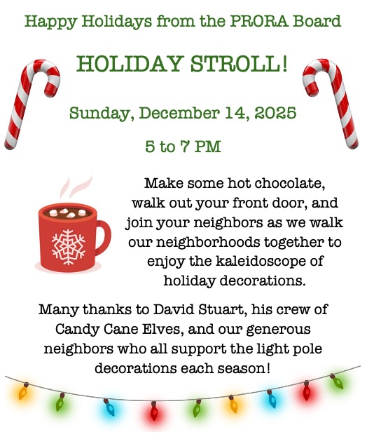 These PDFs are copies of the official PRORA newsletters and flyers distributed to neighbors.